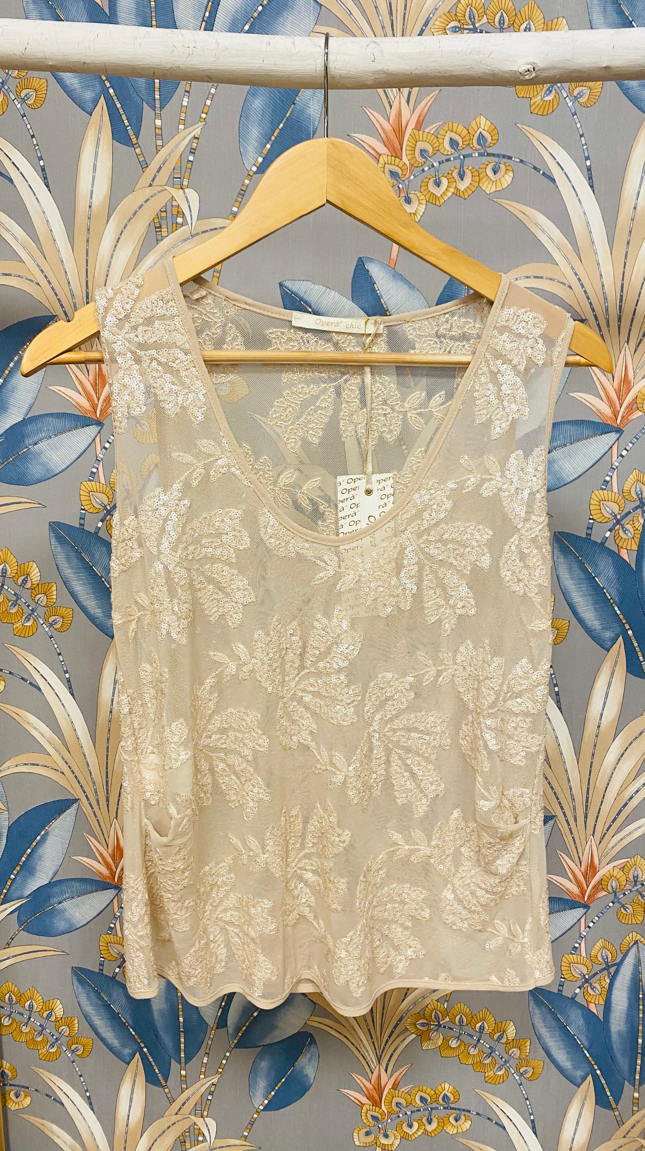 Canotta tulle ramage ecrù